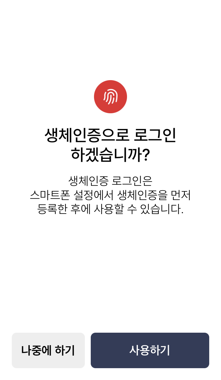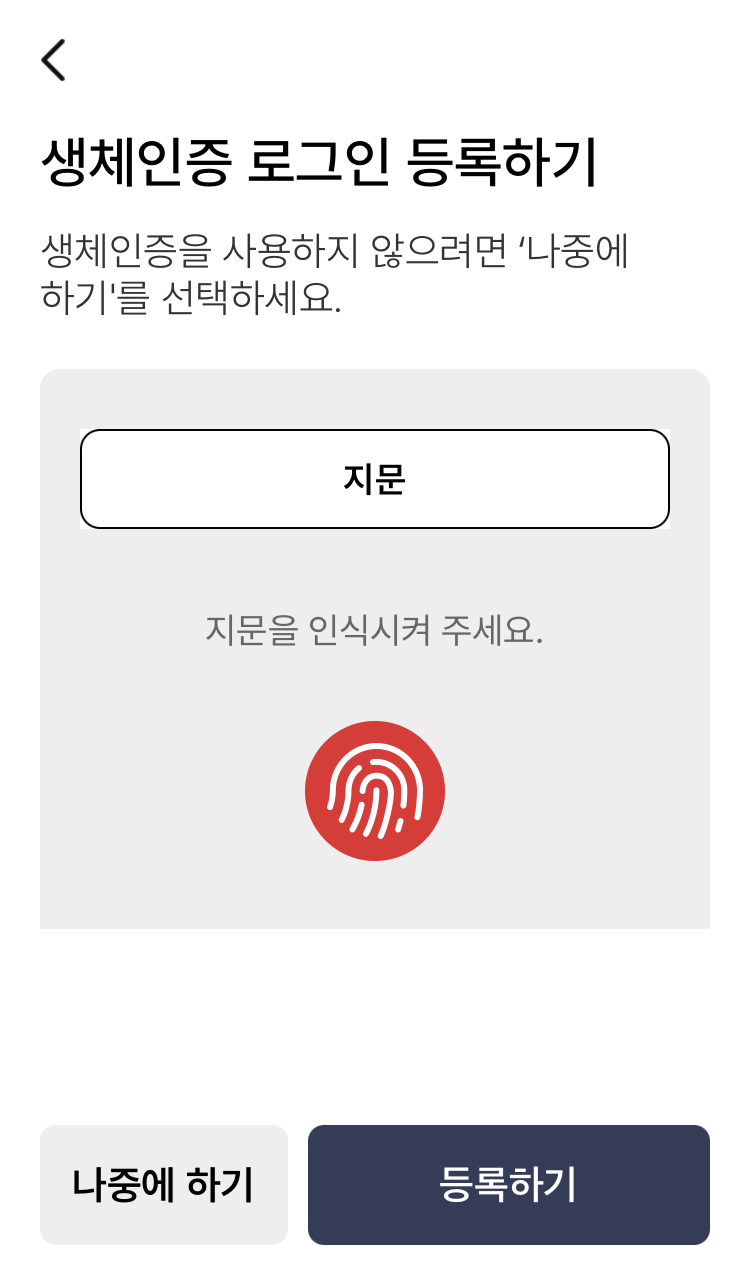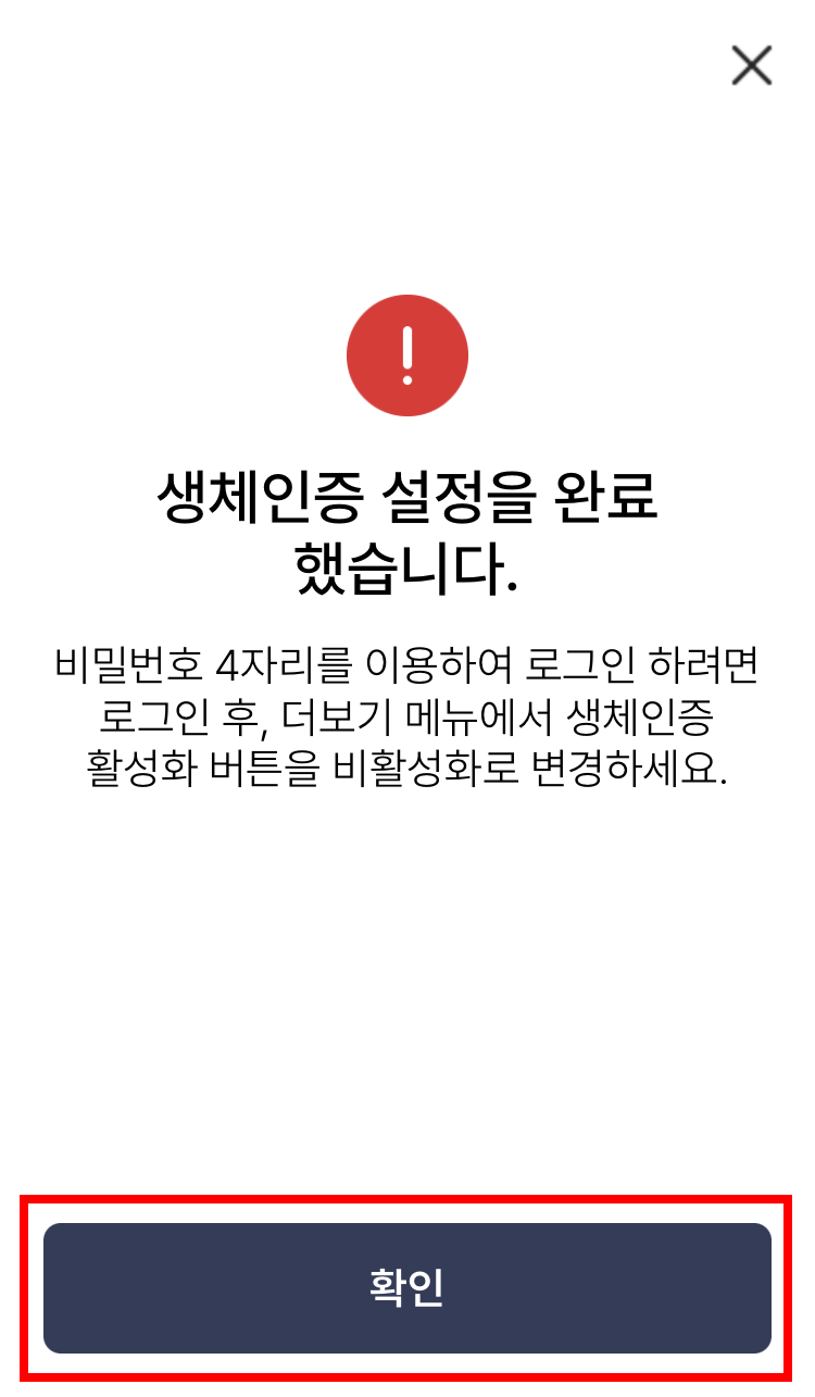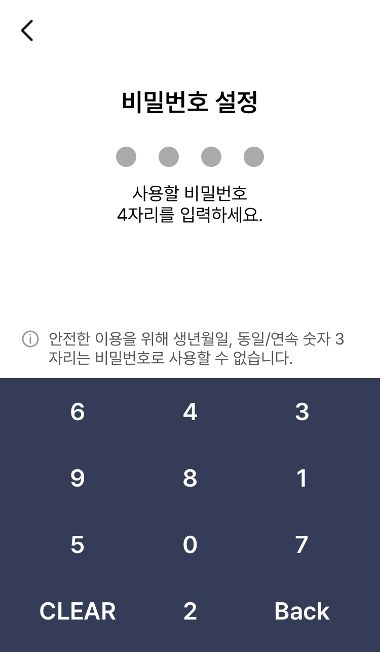 6. 본인 확인을 위한 사용할 비밀번호 4자리를 입력하시고, 생체인증 정보를 등록합니다.