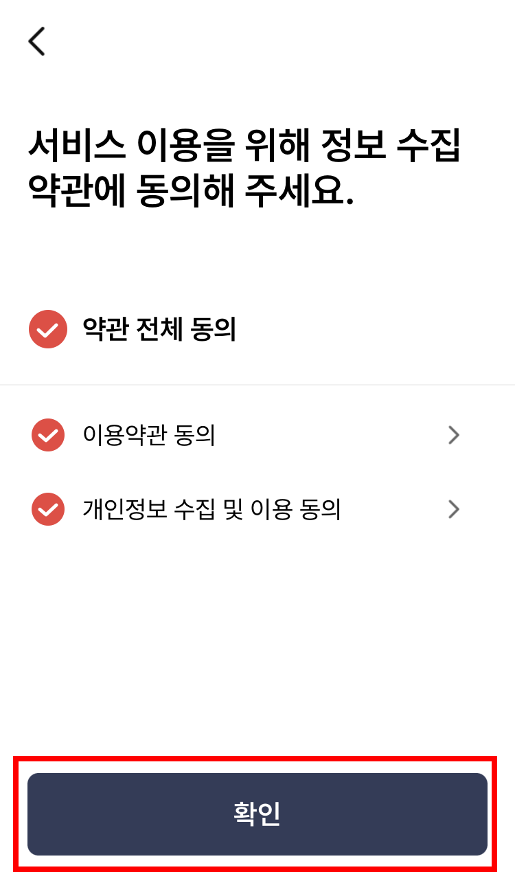 4. 약관 전체 동의 후 확인을 눌러주고 본인확인하기를 시작합니다.