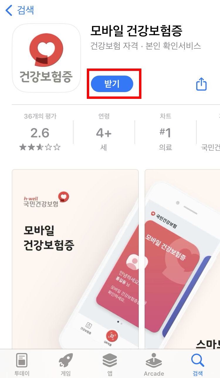 모바일 건강보험증 앱 다운로드하기